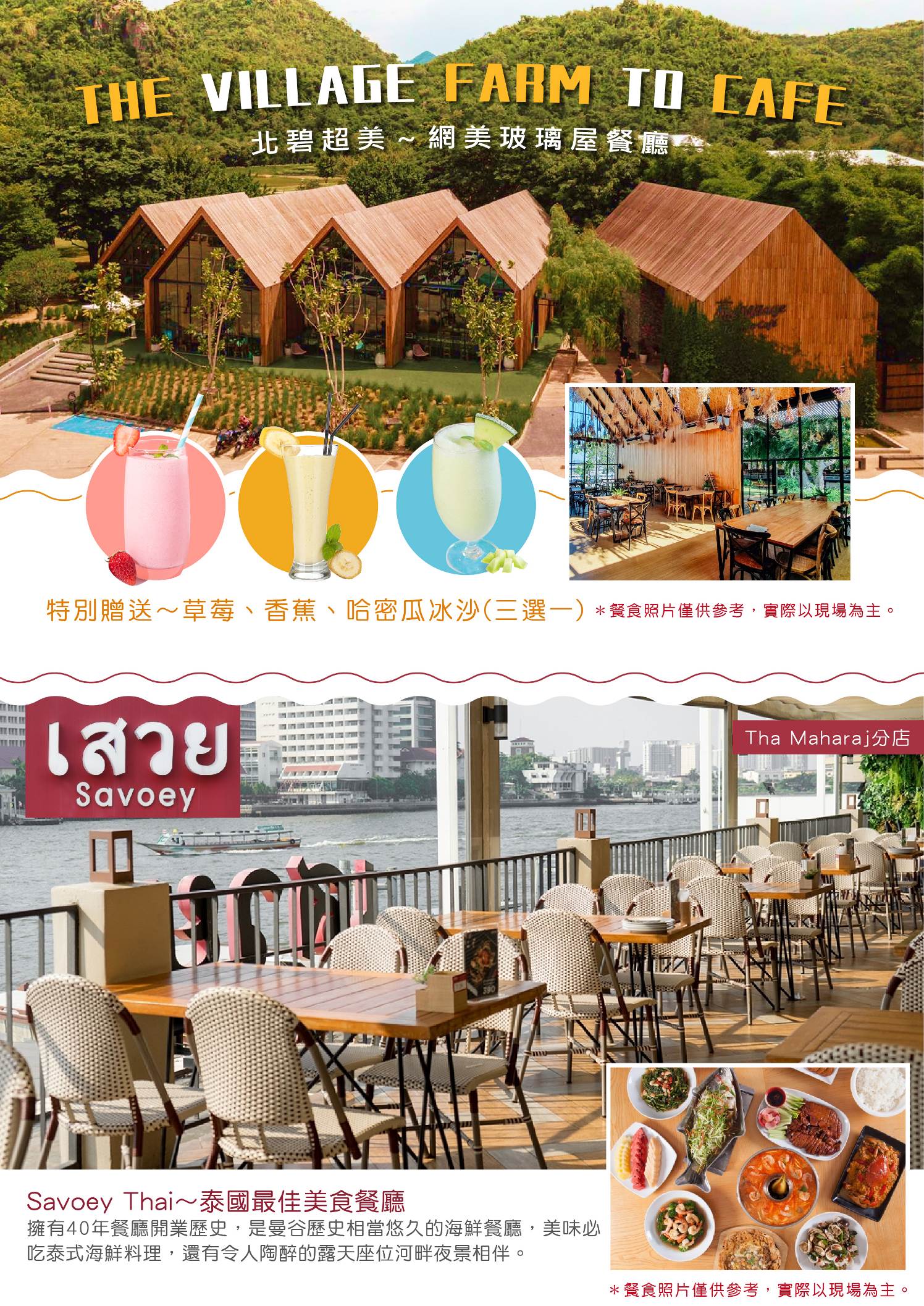 | 早餐 | 酒店內用 | 午餐 | Savoey Thai泰式風味餐(฿350) | 晚餐 | 泰式風味餐(฿300) |