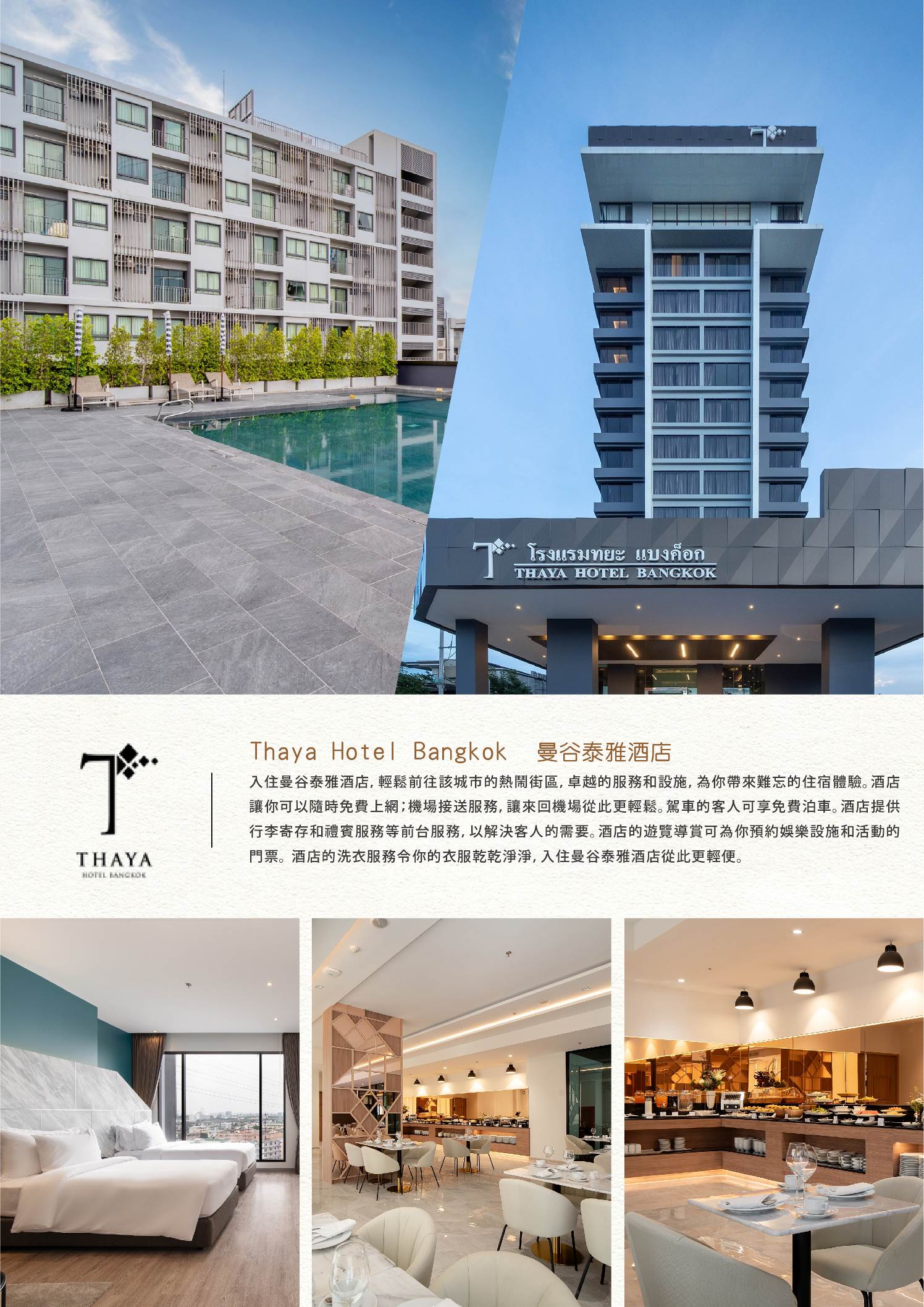 | 住宿 | Thaya Hotel Bangkok/或The Srivaree Airport Hotel/或Amaranth Suvarnabhumi Hotel/或同級 | ||||