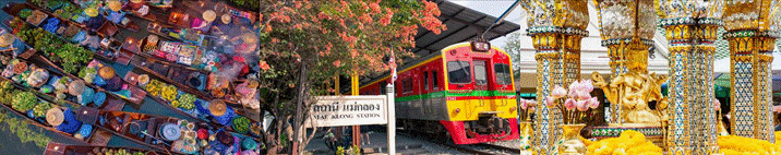 丹能莎朵歐式水上市場:戴著寬邊斗笠的婦女們,划著滿載南方特有水果和蔬菜的小舟,悠游在運河上兜售,沿河的土產店,櫛次鱗比,出售各色精美的名產,如最受遊客喜愛的象牙雕刻品以及絲織品,遊客可以乘坐舢舨船來此慢慢的精挑細選一番,享受一下南國特有的熱絡真是令人收穫良多。