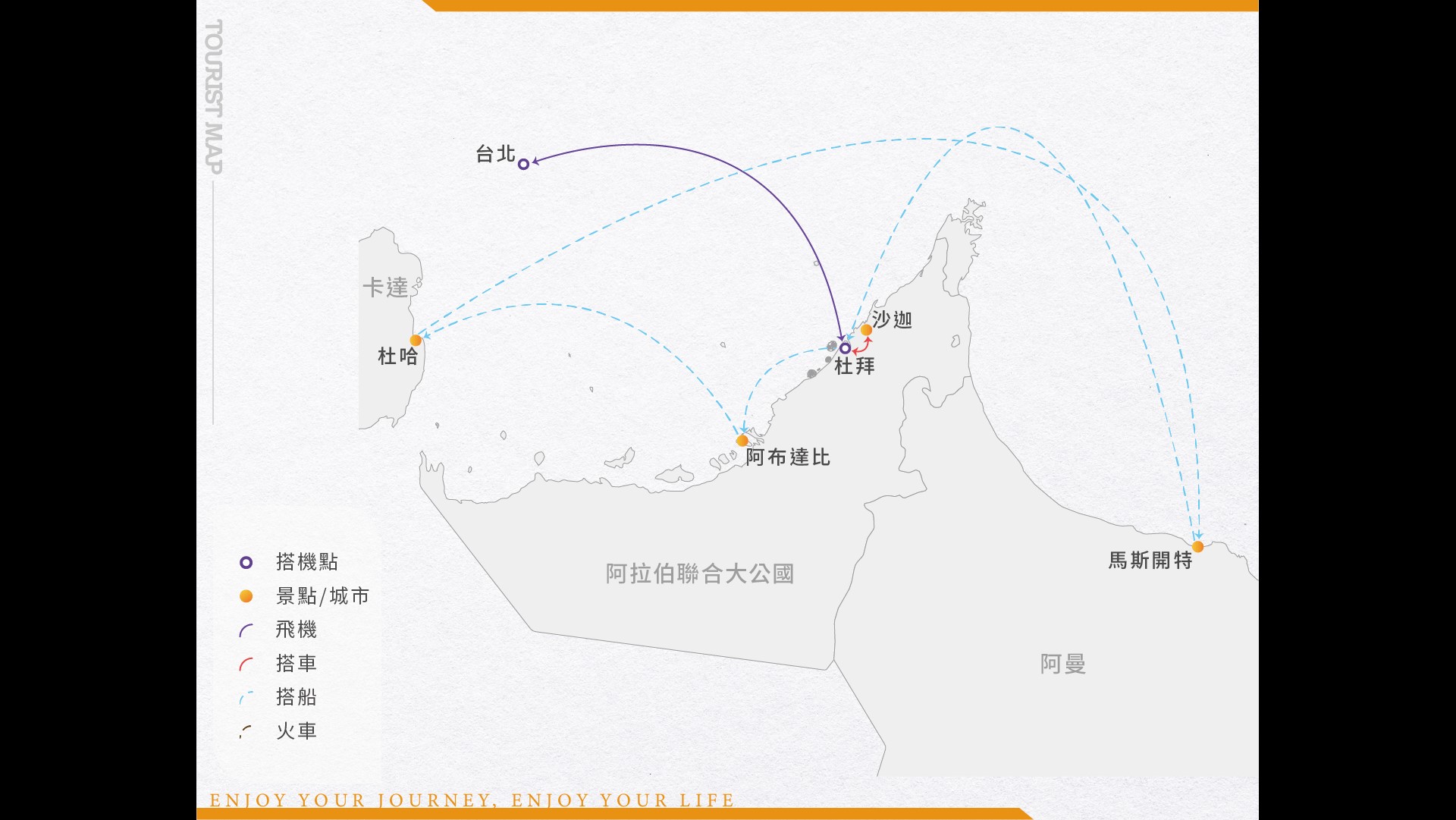 今日桃園機場集合之後,搭乘阿聯酋航空豪華客機直飛中東時尚之都、阿拉伯聯合大公國中最閃亮的明星~~杜拜。杜拜是阿拉伯聯合大公國第二大城,同時也是充滿獨特文化氛圍的的現代大都市,在這裡,東、西方文化交匯,新舊習俗共存,古老傳統與現代文明構成鮮明對比,和煦的陽光、浪漫的海灘、一望無際的沙漠與神秘曼妙的阿拉伯風情,構成一幅幅動人美景。