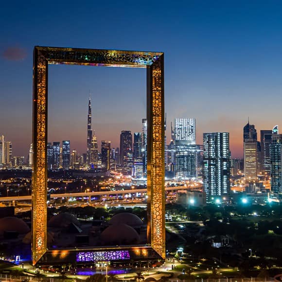 ★杜拜黃金相框已迅速成為備受遊客和當地人推崇的著名新景點。相框高達150米,寬達93米,兩座塔樓由橋樑連接,其造型體現了一種獨特的理念。它的外形酷似一個相框,往北可以眺望到杜拜的老城區,往南則可以欣賞現代風格都市景觀的唯美風光,展現出杜拜這座城市的變化與成長。